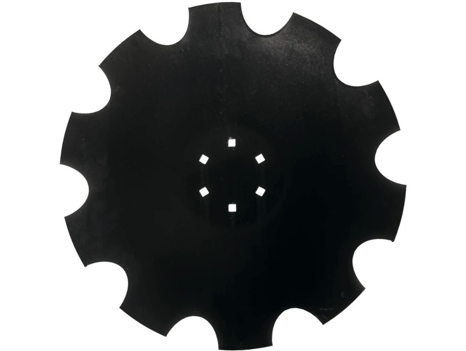 Дискът е термично закален до твърдост 48–50 HRC. Тази обработка увеличава неговата издръжливост при дълготрайна работа, особено в сухи, каменисти или твърди терени. Прецизно изрязан квадратен отвор осигурява стабилен и сигурен монтаж, като намалява риска от износване на свързващите компоненти.