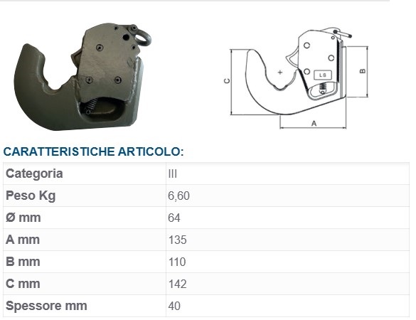 Кука /ухо/ за окачване на трактор ,катег.3-4,ф64х38