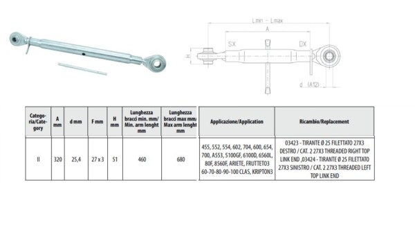Обтегач/разпънка/ трета точка на окачване 27х3 460-680мм
