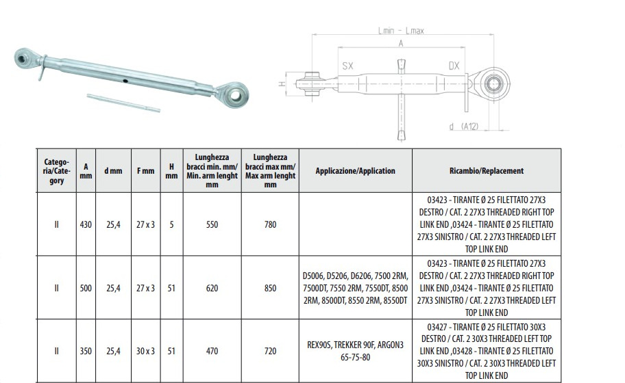 Обтегач/разпънка/ трета точка на окачване 30х3 470-720мм