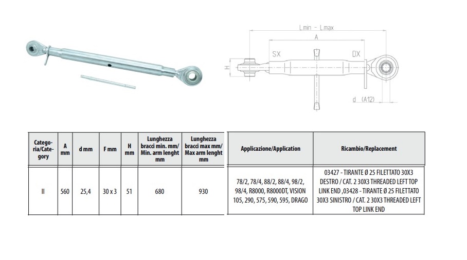 Обтегач/разпънка/ трета точка на окачване 30х3 680-930мм катег.II