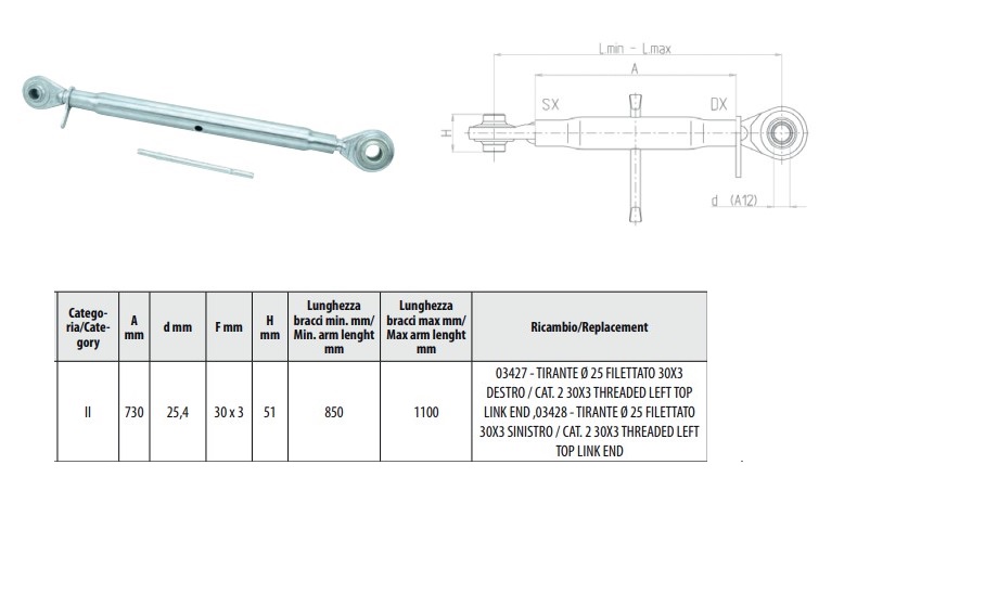 Обтегач/разпънка/ трета точка на окачване 30х3 850-1100мм, катег.II