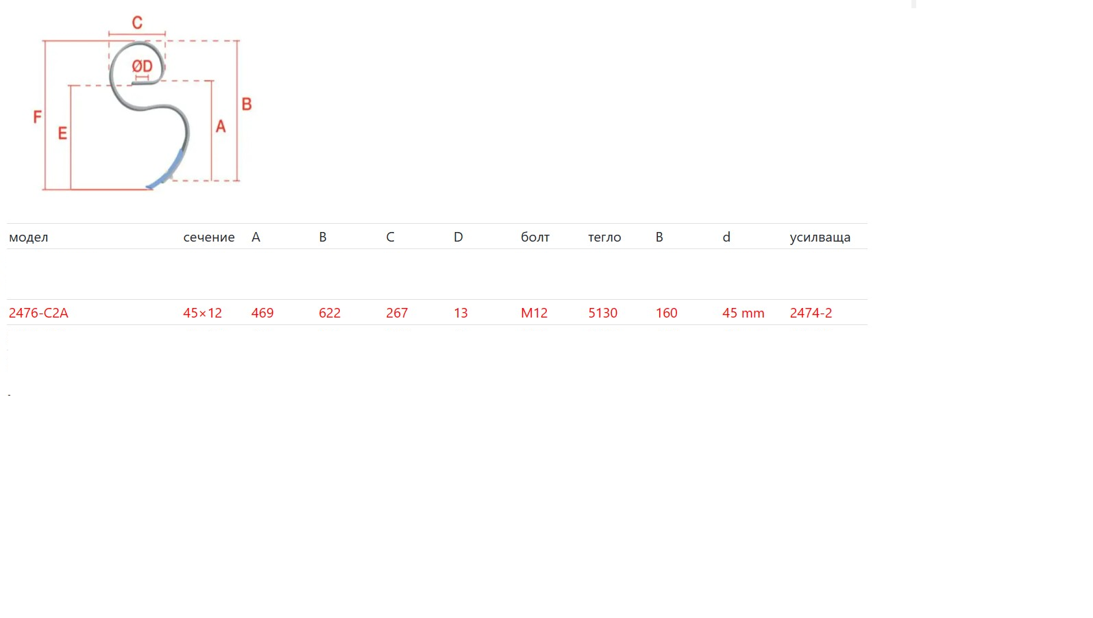 Може да бъде окмплектована с усилваща стойка 45х10 2474-2